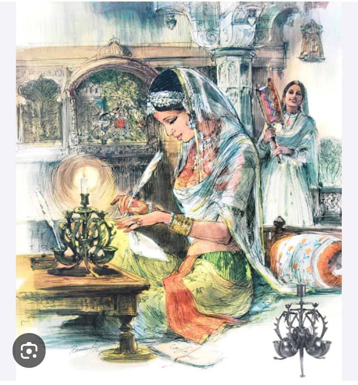 imagined period picture of a woman of Rajasthani nobility, is seen writing a letter to her